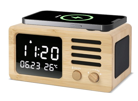 [우드쇼] Y139 블루투스 스피커 15W 고속 무선충전시계_리얼우드