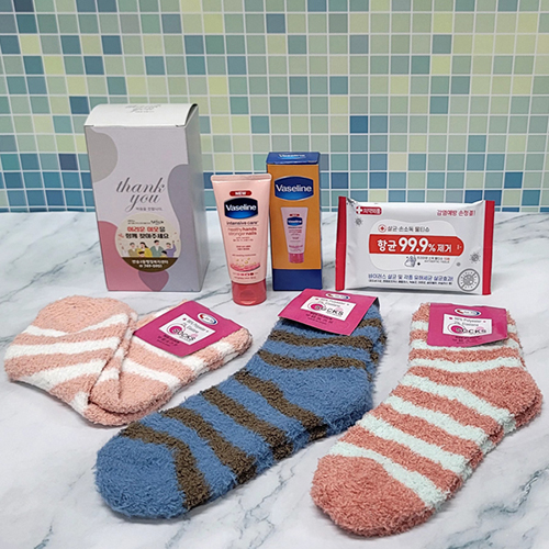 [선물세트 4종] 바세린 핸드크림 수면양말 양말 소독티슈 물티슈