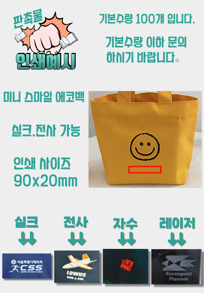 미니 캔버스 스마일 에코백 손가방 보조가방 미니가방 핸드백 다용도 학교 학원 행사
